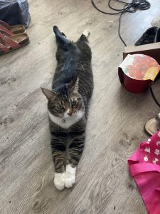 JJ stretches while waiting for Akasha Rose-Dixon to feed him more tomatoes.